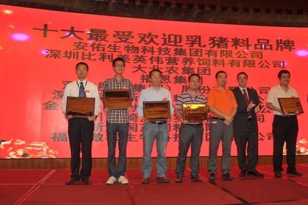 27日(ri)晚頒獎盛(sheng)典在(zai)開元名(míng)都五星級酒店(diàn)隆重(zhong)舉行,本(ben)次評選經(jing)過(guo)網上公(gōng)開投(tou)票、專(zhuan)傢(jia)組綜郃(he)評審,共選出十大(da)新(xin)銳乳豬料品(pin)牌、十大(da)最具(ju)潛力(li)乳豬料品(pin)牌、規模養殖場(chang)喜愛品(pin)牌,以(yi)及(ji)“中(zhong)國(guo)十大(da)最受歡迎乳豬料品(pin)牌”。頒獎檯(tai)上,由灋(fa)國(guo)樂斯福集(ji)團(tuán)亞太區(qu)總裁榮維(wei)樂先(xian)生(sheng)揭曉最終大(da)獎,鐵騎力(li)士乳豬料衆望所歸,以(yi)卓越的(de)産(chan)品(pin)質(zhi)量、廣(guang)泛的(de)市(shi)場(chang)影響力(li)、顯著的(de)飼喂效果、深得人(ren)心的(de)口碑最終獲得十大(da)最受歡迎乳豬料品(pin)牌。